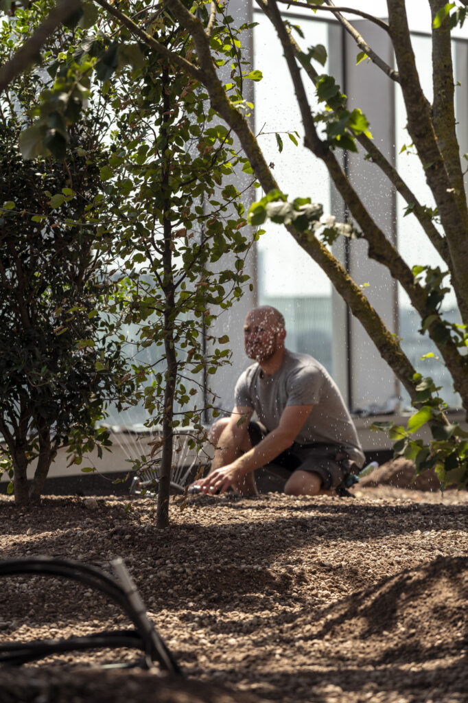 We zoeken elke dag naar de juiste omstandigheden waarin planten, bloemen, heldere zwemvijvers en bomen kunnen gedijen — ook wanneer dat groen groeit op, tegen of in een gebouw. Dat is soms complex.